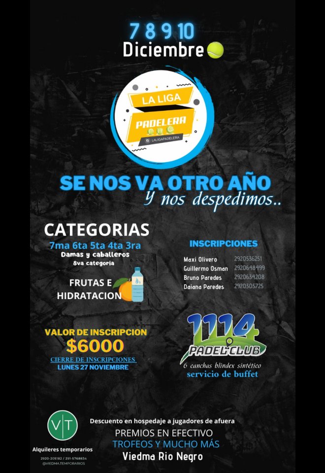 »» Evento: LALIGAPADELERAFINDEANO »» Localidad: Viedma »» Fechas: 07/12/2023 al 10/12/2023